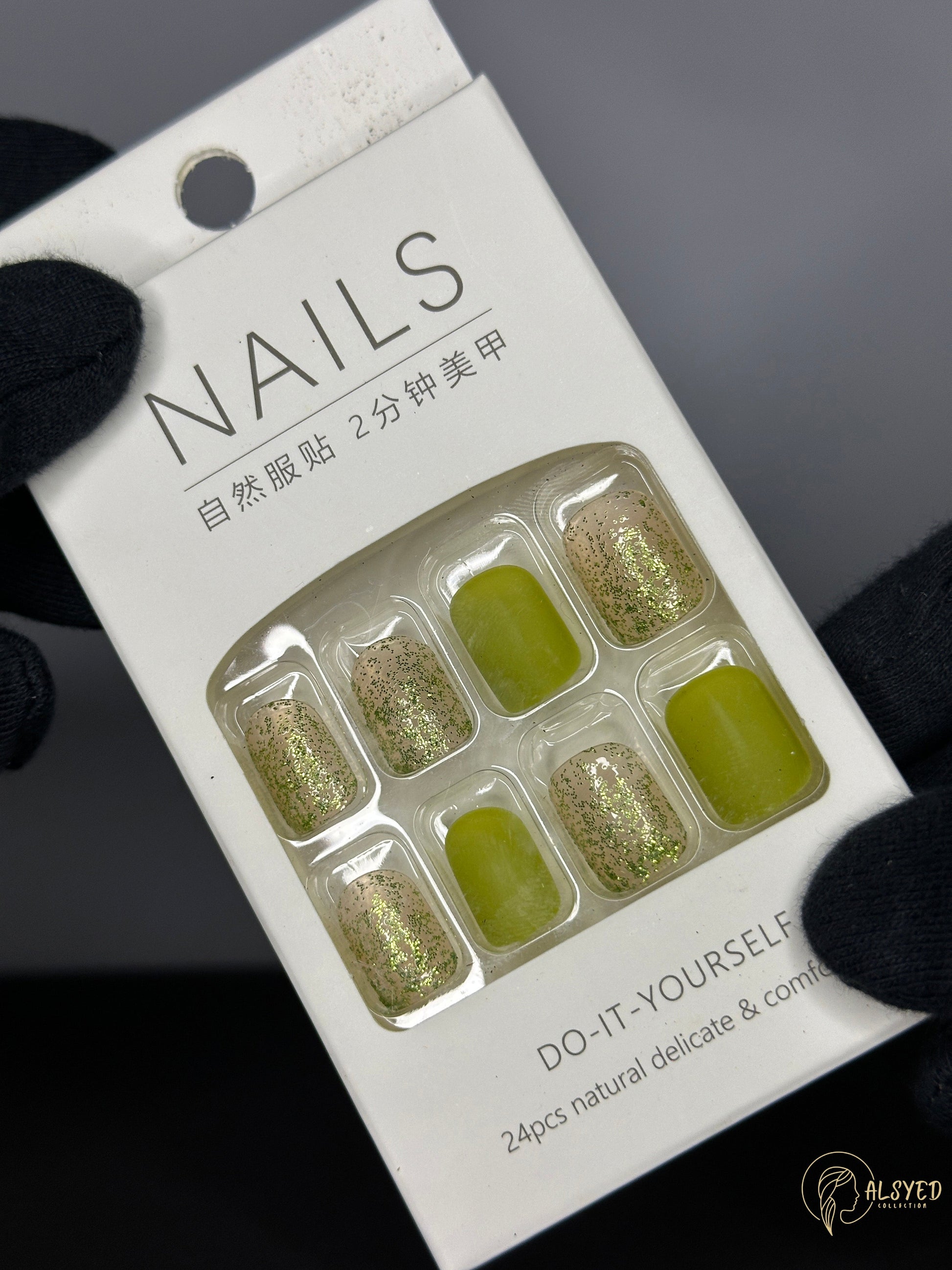 Cute & Colorful Nail Set – Pack of 24 - Green Glitter